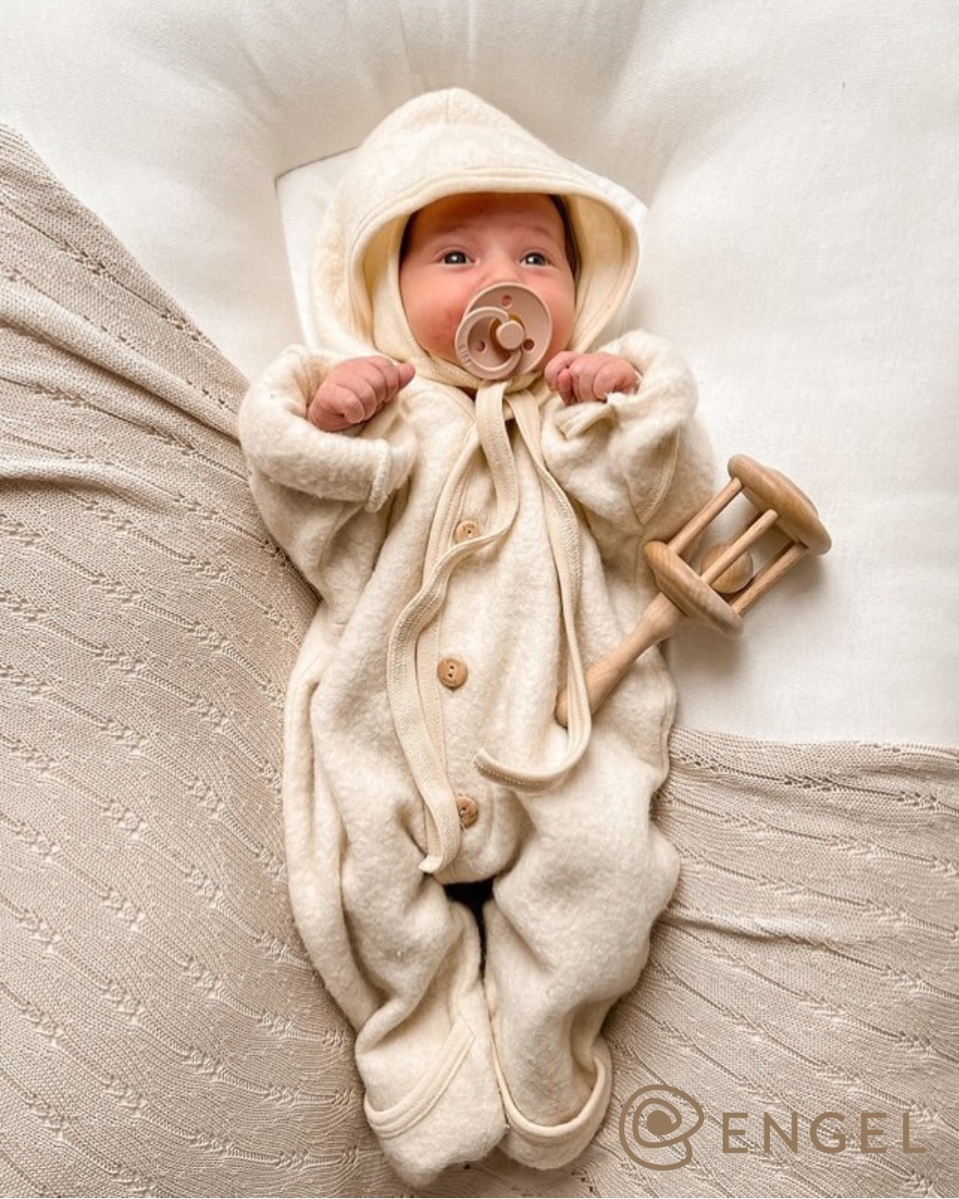 in hochwertigster Merinoschurwolle/Seide-Mischung - von der Firma Engel nach höchsten ökologischen und sozialen Standards in Deutschland hergestellt. Optimale Wärmeregulierung und bestes Hautklima - von Anfang an. Und später geht es dann natürlich weiter - auch z.B. mit Jacken und Overalls... bis Gr. 86/92.